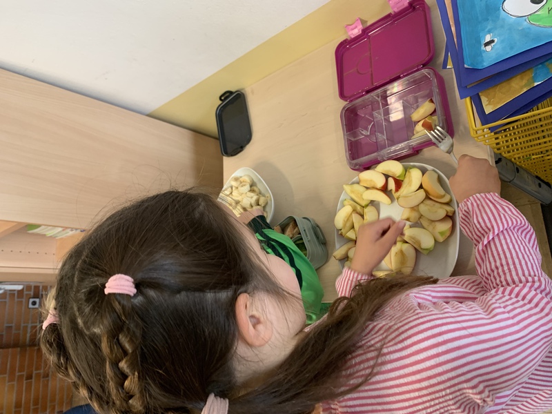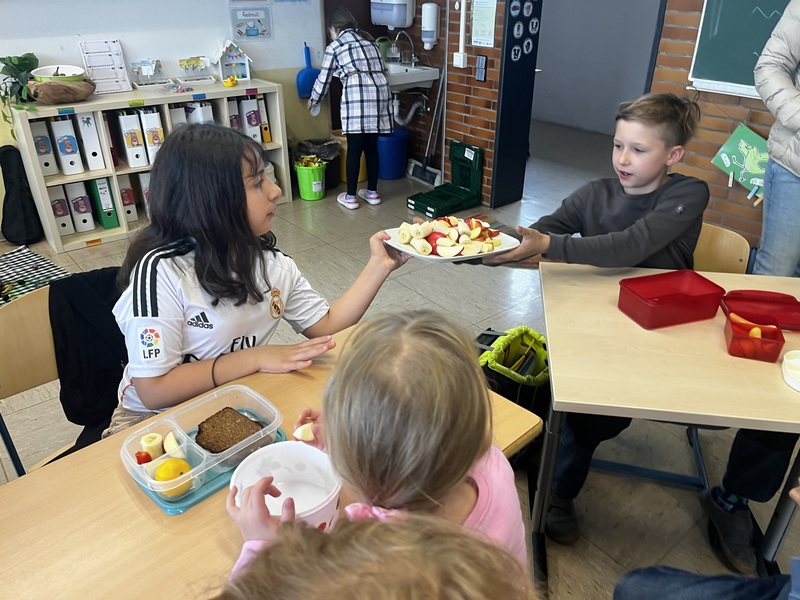 ganze Schulgemeinschaft wurde frisches Obst vorbereitet, geteilt und gemeinsam genossen. So konnten die Kinder erleben, wie lecker und wertvoll die Gaben der Natur